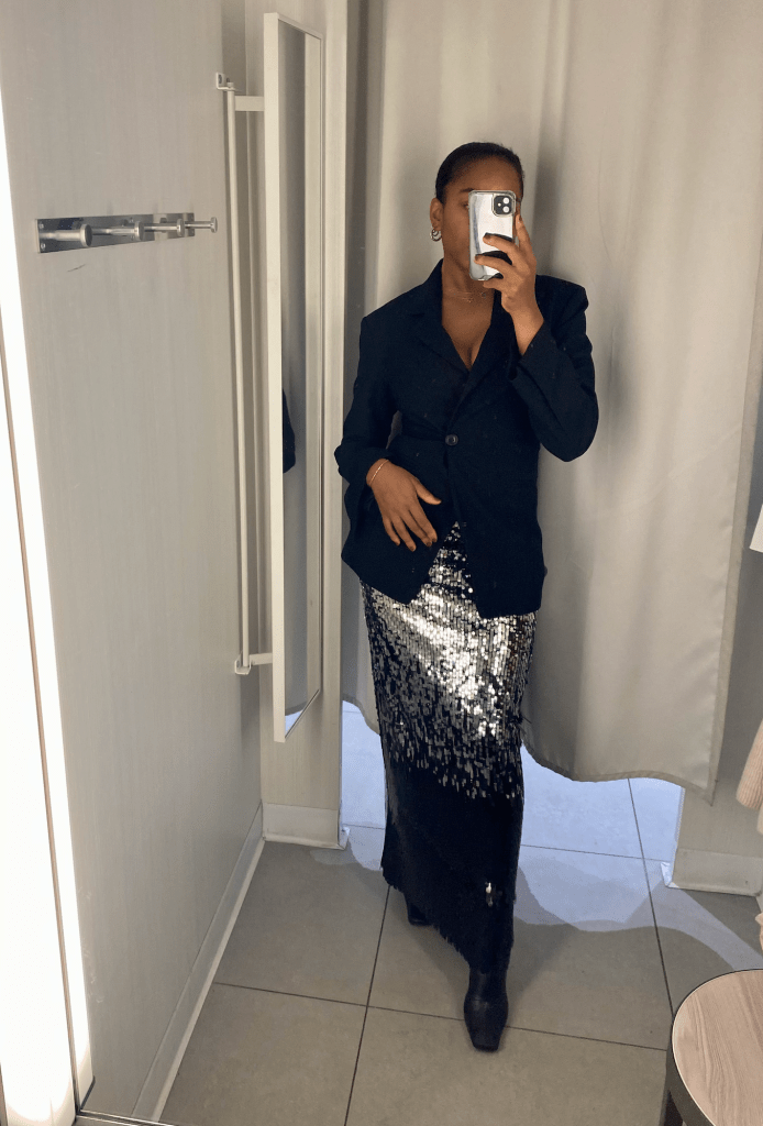 Look for unique design that fits you and your style. For me, the H&M long sequinned skirt stole my heart completely as I live for a long skirt and the colour way would be so versatile in my wardrobe. Instead of looking at items that are completely embellished, also look for items that have minimal sequins on them as this will help with diversifying the item when you plan to style it up again.