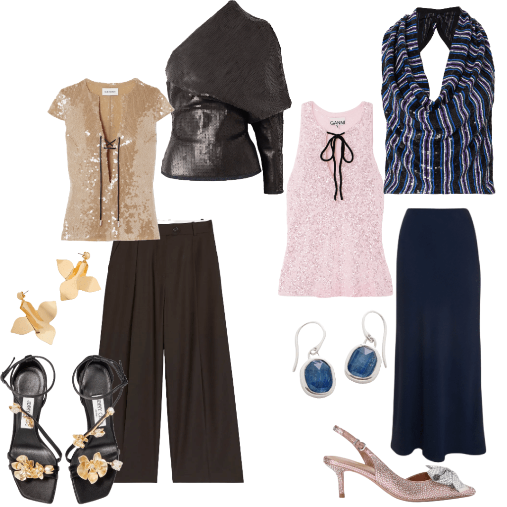 This takes me to my style pages. I have, as I always try to do, styled up items in ways to ignite a new way of wearing them and items that you can find right now that can inspire you to purchase differently. Firstly, I want to share 3 quick and easy things to look for when looking for new sequin items.