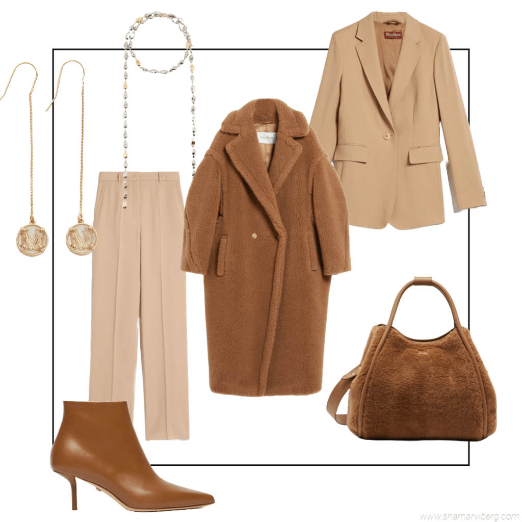 Style tip: When working out your fashion style, the best thing to do when styling a strong texture coat like the Max Mara Teddy in an elevated ‘new classic’ way is to focus on matching the colour of the coat with your fashion accessories as your go-to style choice. This brings the outfit together and makes it look more intentional and well thought about.